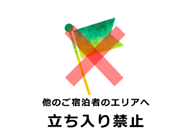 夜10時以降はデッキ・テント内やその他全てのエリアでの大声や大音量で音楽を鳴らす等、周りのお客様のご迷惑となりうるすべての行為を禁止しています。警備員の注意を守って頂けないお客様には退去をお願いいたします。
