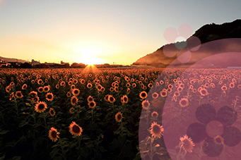 九州一の大河・筑後川と日迎えの山に育つ様々な果樹に恵まれ、冬場の温泉シーズンのみならず、ひまわりやコスモス、菜の花など季節ごとに表情を変える花園など四季を通して幅広い層のお客様に足を運んでいただいております。